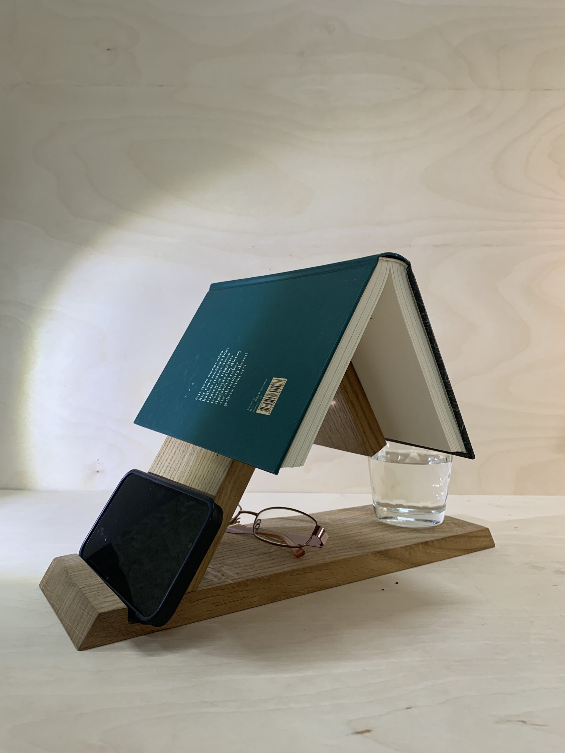 Lentynėlė puikiai tinka knygai ar planšetei, turi vietą telefonui, stikliniui, akiniams ar kitiems smulkiems daiktams – viskas po ranka.
